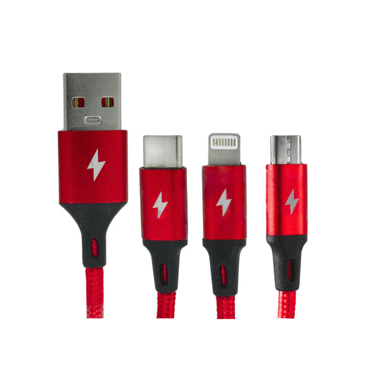 Cable de carga múltiple V8/Tipo C/IPHONE rojo Super átomo SA2006C