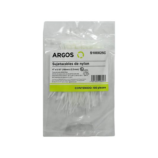 Cincho 4" (10.16 cm) blanco 100 piezas Argos S100X25C