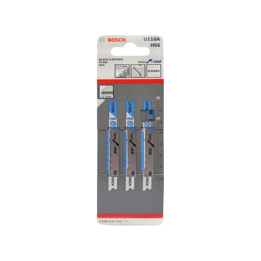 Segueta para caladora corte metal 3 piezas HSS tipo "U" Bosch U118A