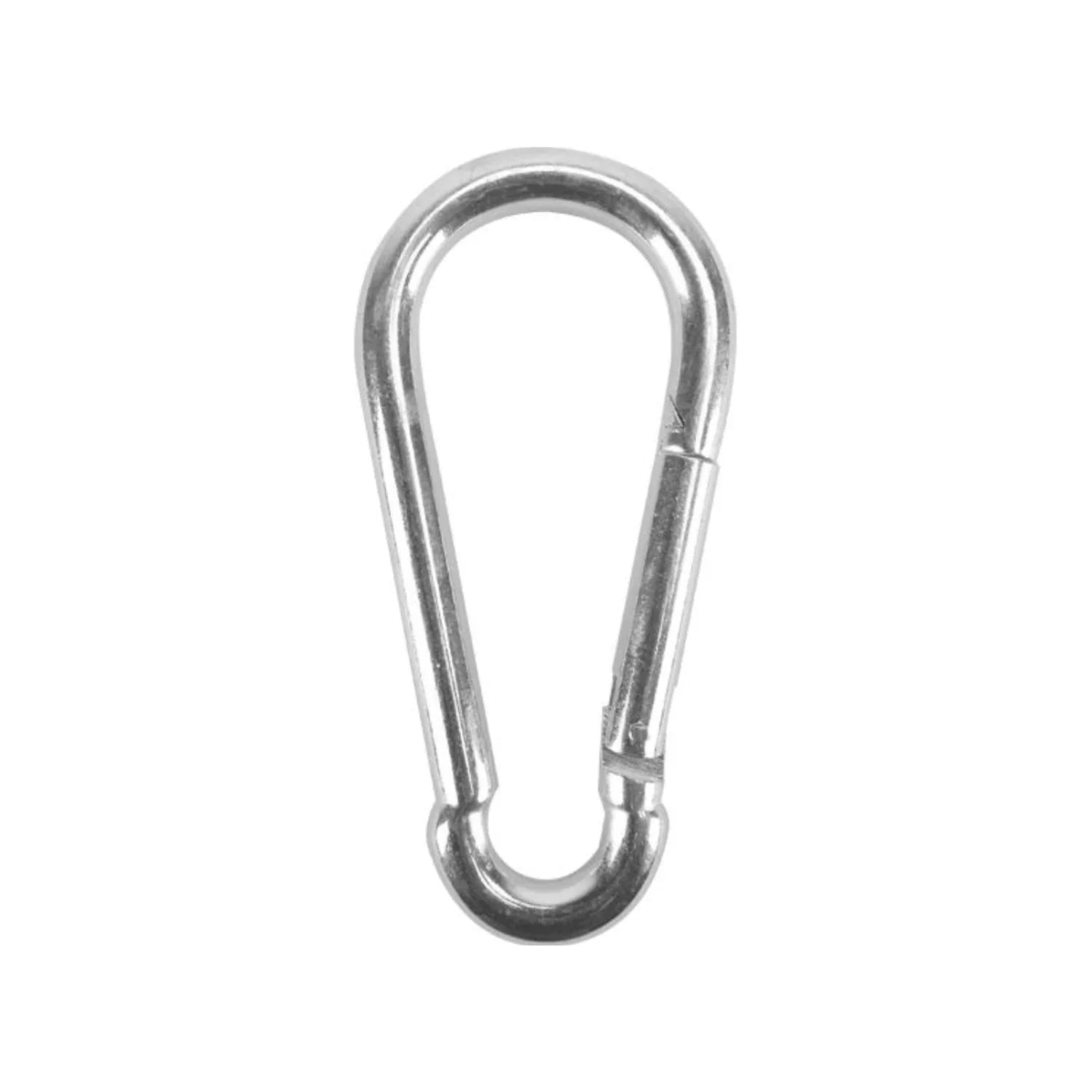 Bandola mosquetón de acero con cierre de resorte que ofrece un enganche rápido y seguro. Ideal para conexiones rápidas de cables y cuerdas.