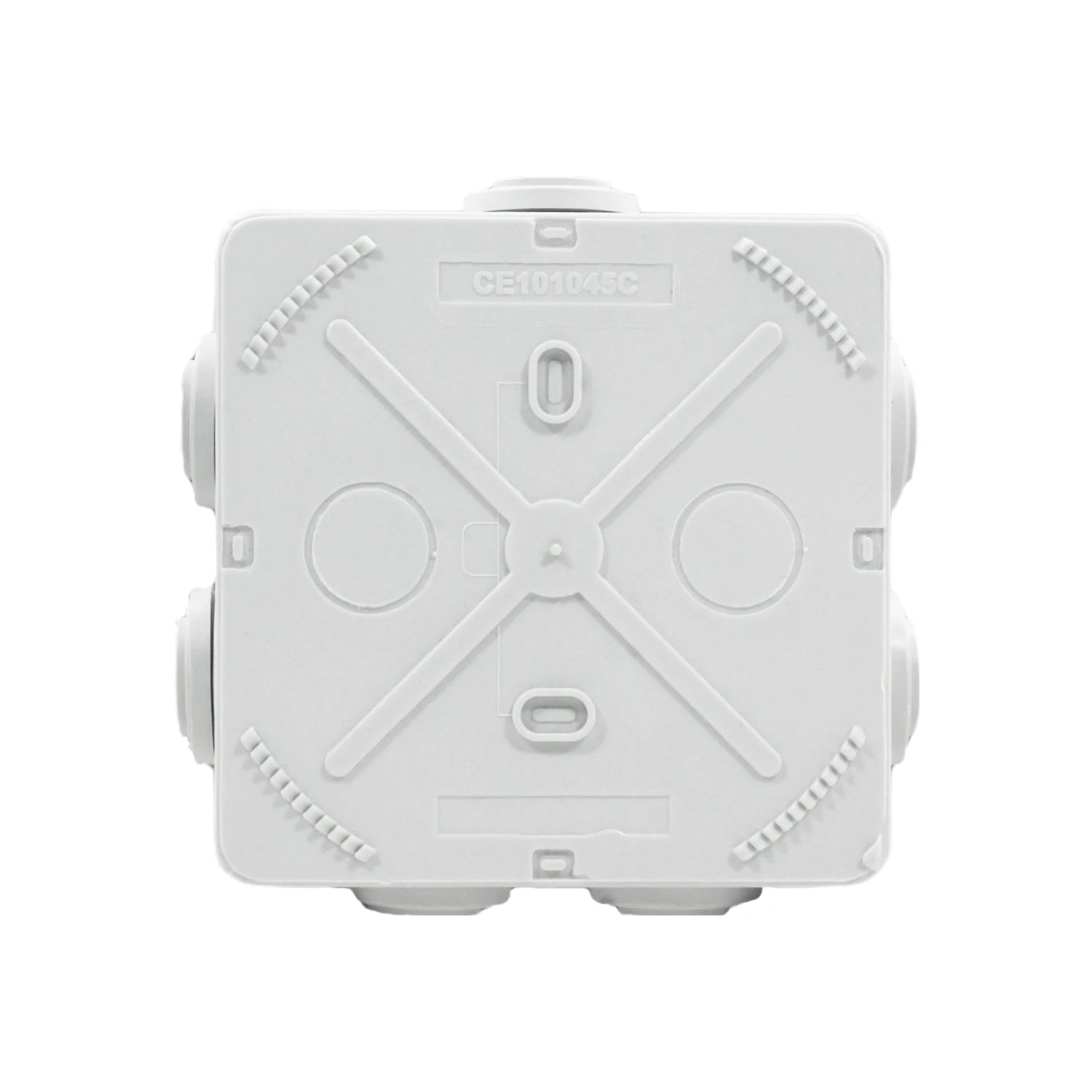 La caja estanca Argos modelo CE101045CH está diseñada para proteger circuitos eléctricos contra la infiltración de agua y polvo. Fabricada en termoplástico resistente, no propaga fuego ni se oxida. Es ideal para derivaciones de cables en instalaciones interiores o exteriores y cuenta con conos de presión para fijación rápida. Brinda un amplio espacio para cableado y una instalación sencilla.