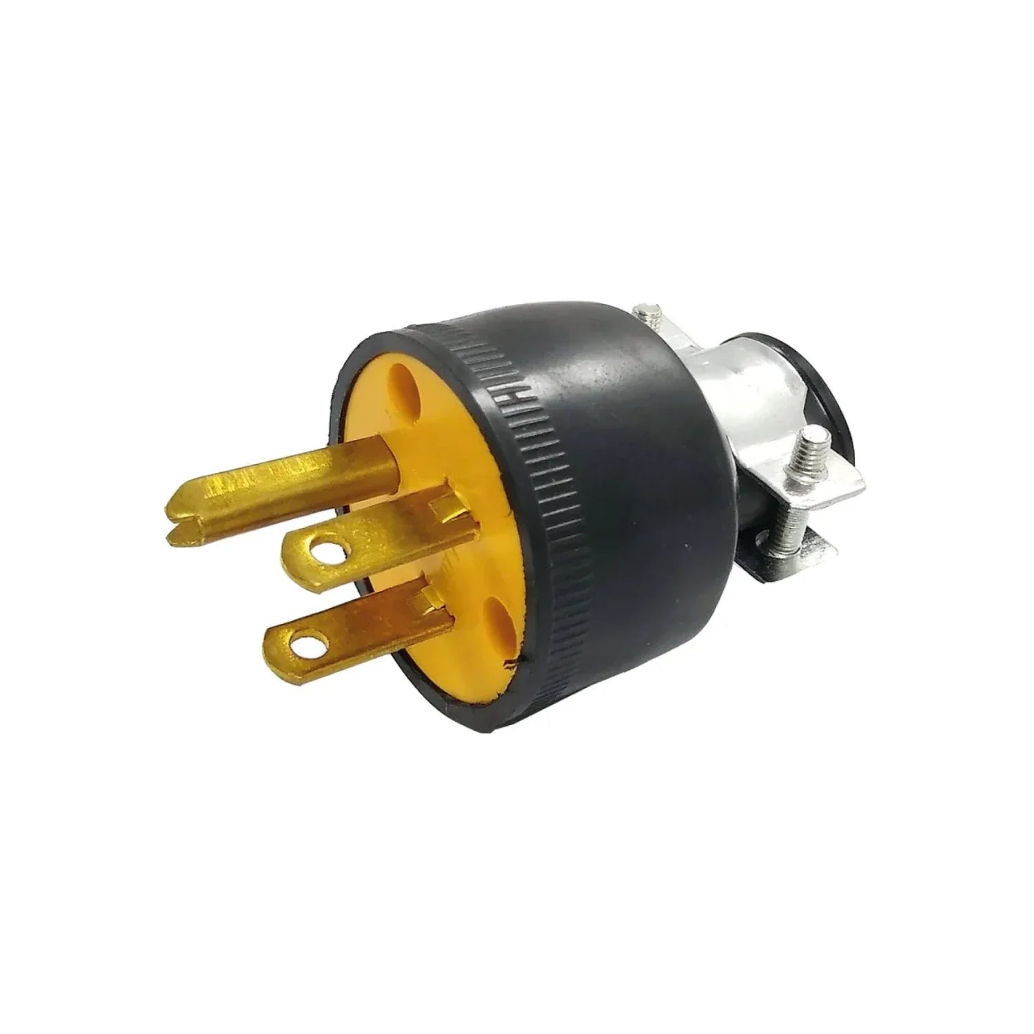 Clavija industrial aterrizada León modelo L38-3P, diseñada para aplicaciones eléctricas de uso rudo en entornos domésticos, comerciales e industriales. Su cuerpo robusto con abrazadera metálica y terminales reforzadas garantiza una conexión segura y duradera. Ideal para extensiones, herramientas eléctricas y equipos que requieren conexión aterrizada confiable en condiciones exigentes.