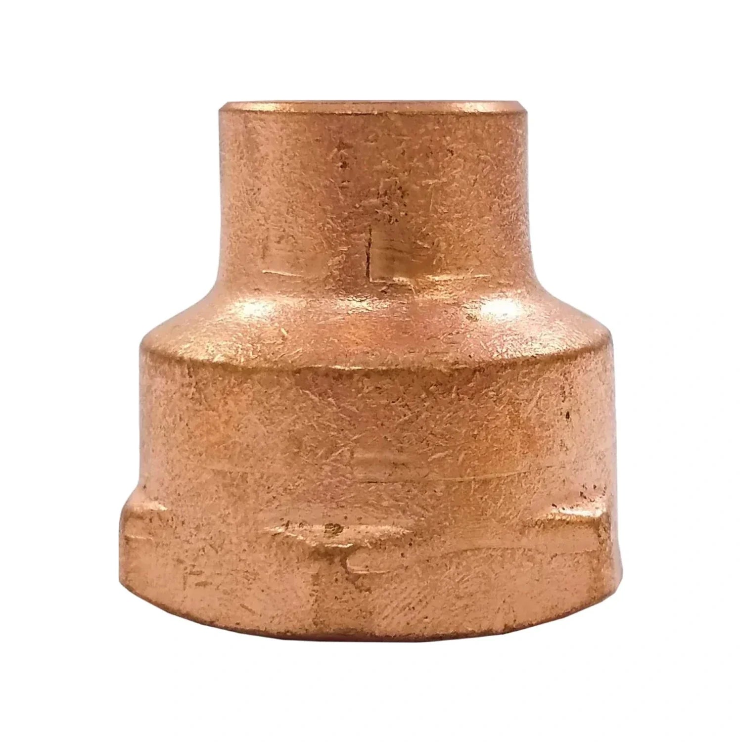Conector hembra de cobre reducido con rosca interior NPT de 1/2" x 3/4" (13 mm x 19 mm), diseñado para sistemas hidráulicos, de gas natural y L.P. Fabricado en cobre de alta resistencia, ofrece excelente durabilidad, resistencia al torque y a la corrosión.
