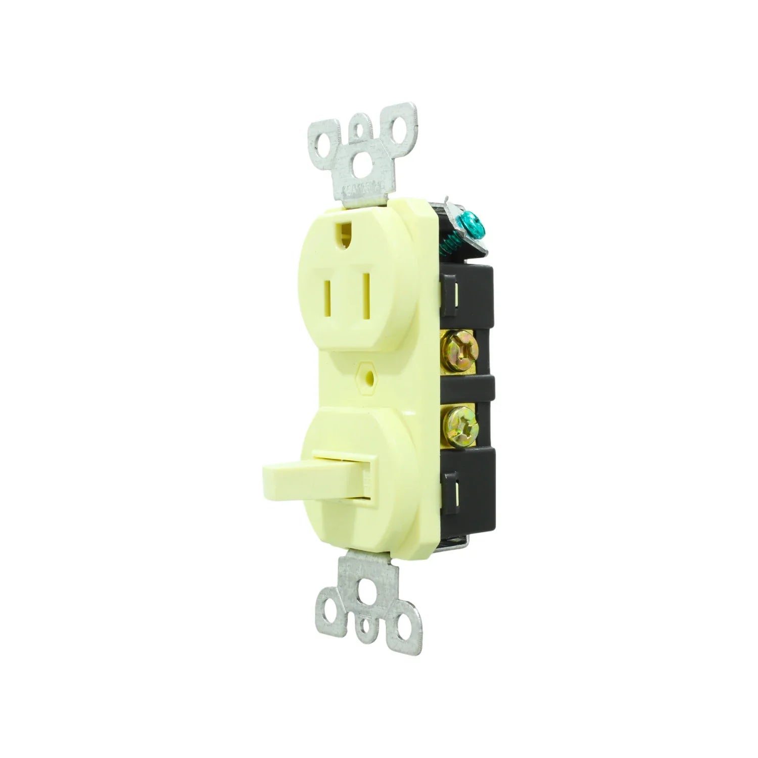 Apagador con contacto aterrizado. Ideal para instalaciones eléctricas, residenciales y comerciales. Fabricado en ABS color marfil. Contacto aterrizado para mayor seguridad.