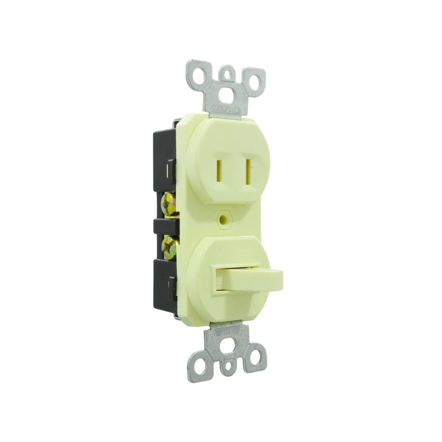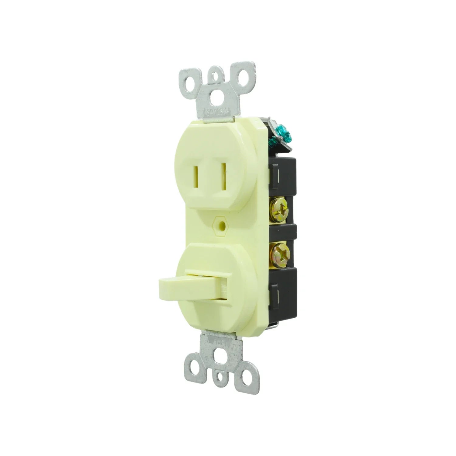 Apagador con contacto aterrizado. Ideal para instalaciones eléctricas, residenciales y comerciales. Fabricado en ABS color marfil. Contacto aterrizado para mayor seguridad.