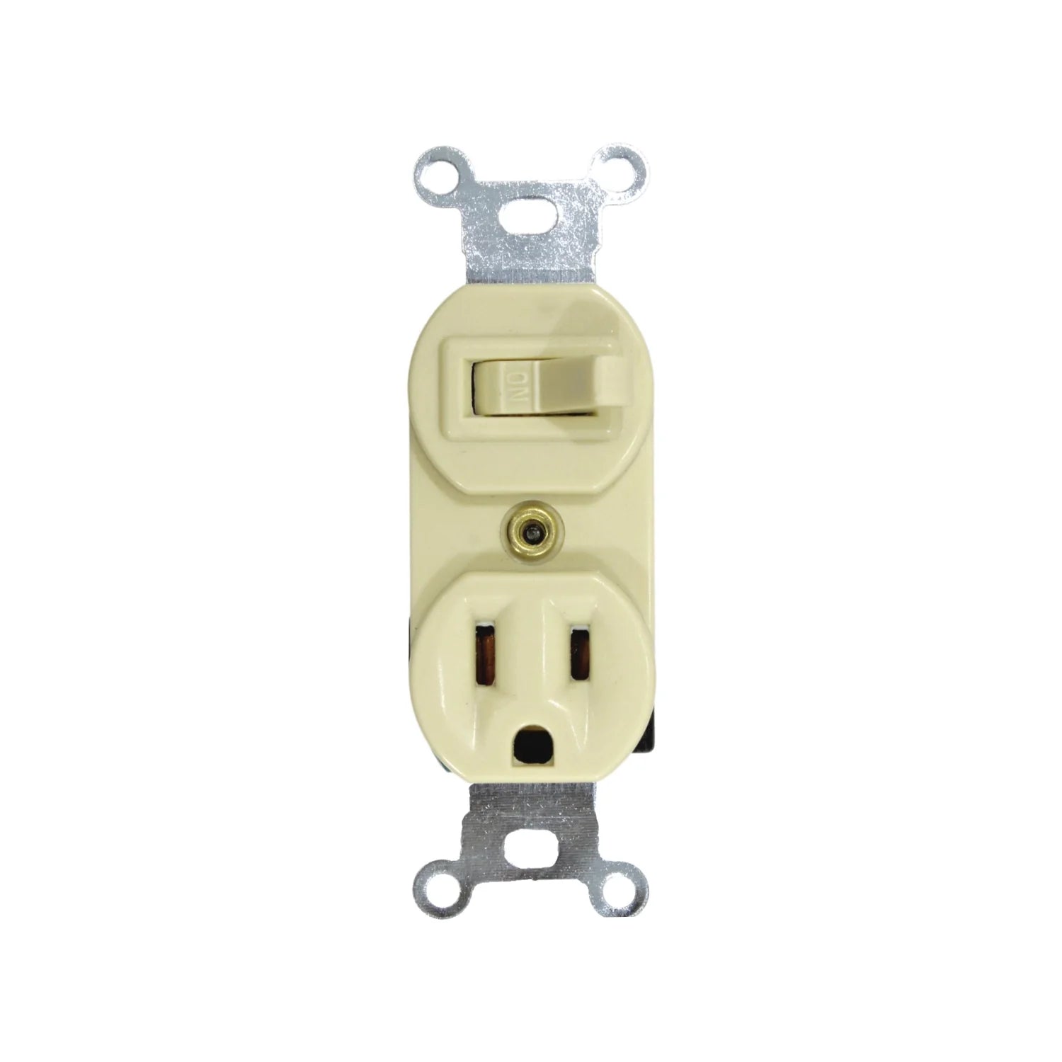 Apagador con contacto aterrizado. Ideal para instalaciones eléctricas, residenciales y comerciales. Fabricado en ABS color marfil. Contacto aterrizado para mayor seguridad.