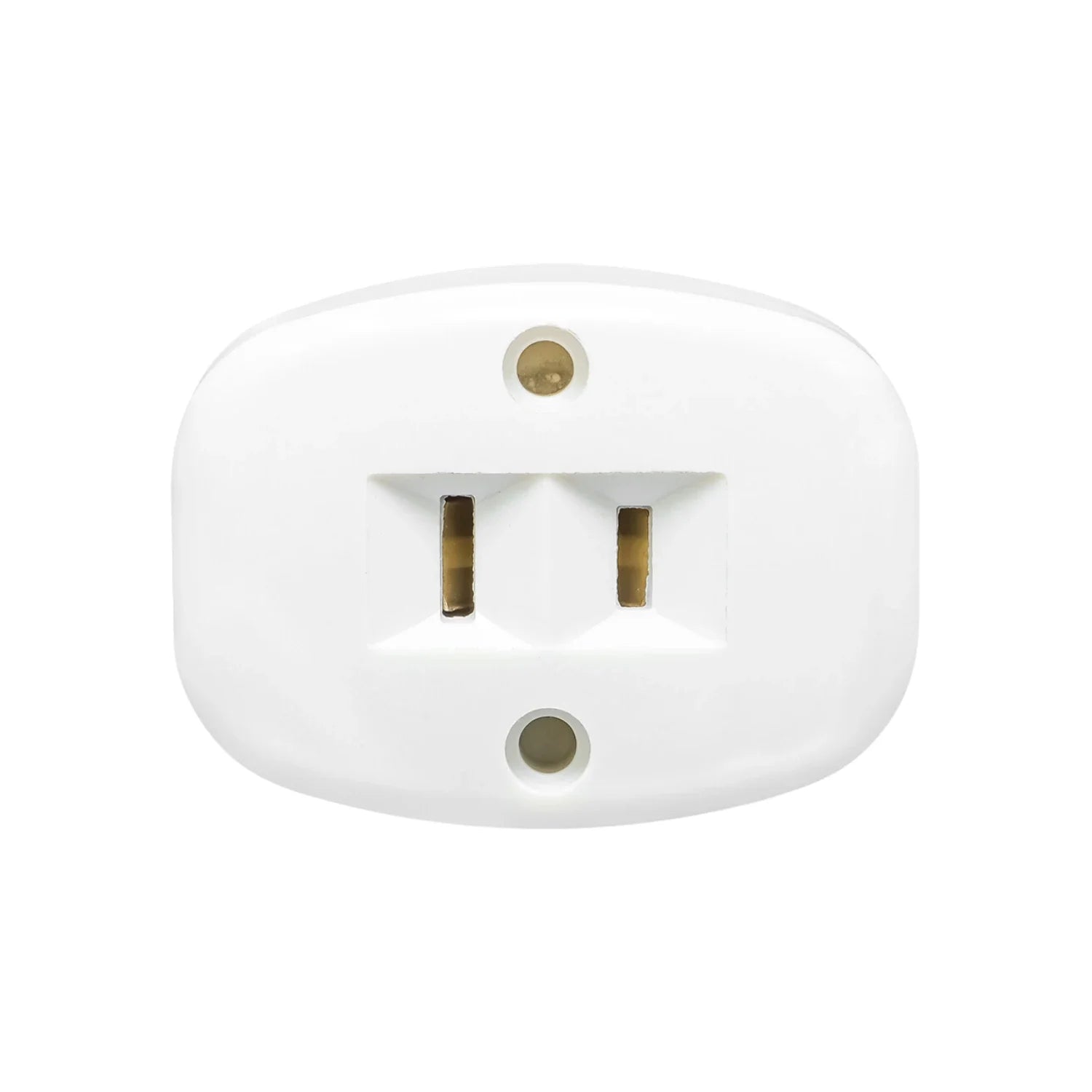 Con un montaje sobrepuesto el cual permite colocarlo directamente en muros sin necesidad de cajas empotrables. Ideal para conectar lámparas, televisores y aparatos pequeños. Fabricado en baquelita, ofrece una conexión segura y duradera.