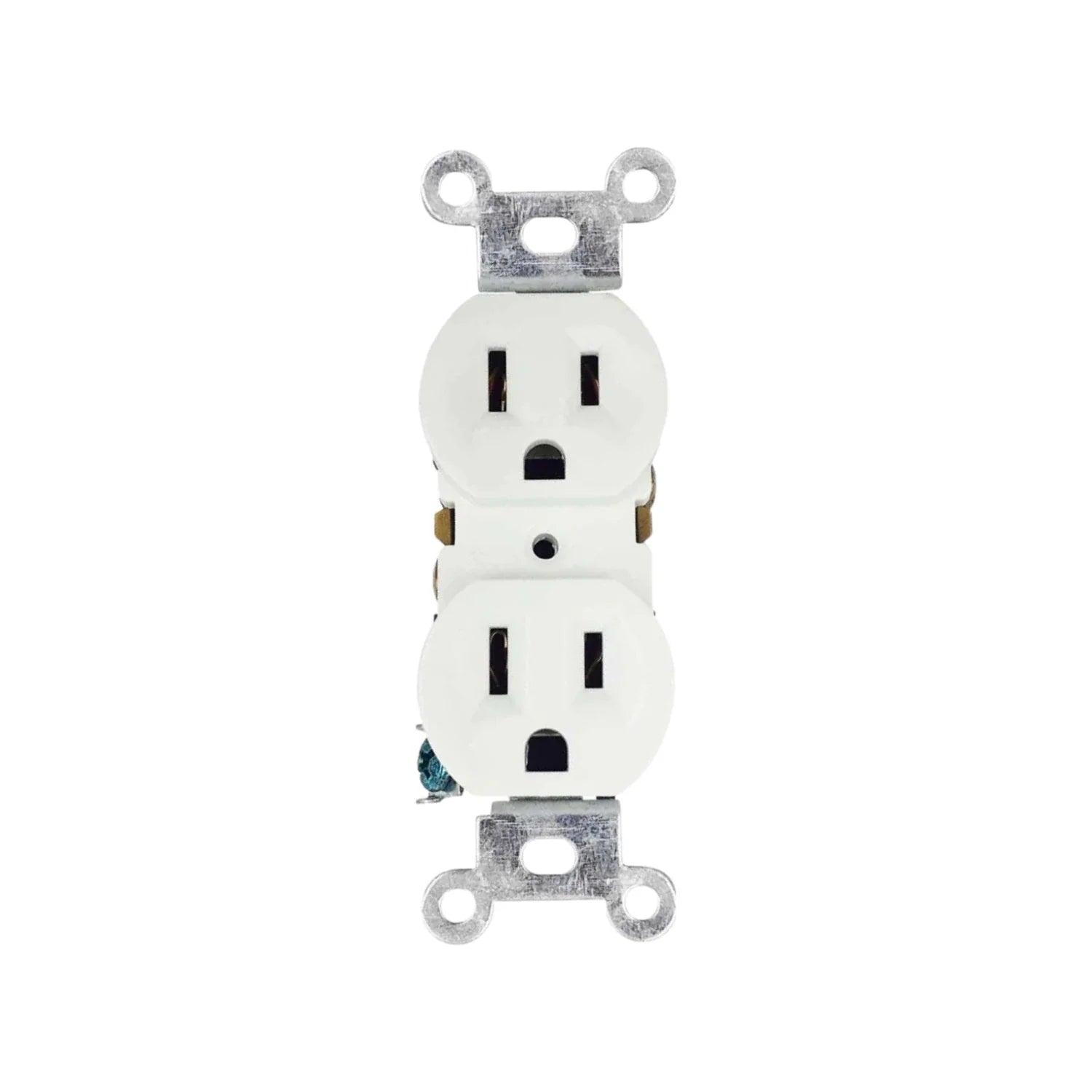 Contacto doble aterrizado, fácil instalación en cajas eléctricas. Fabricado en ABS, con base metálica resistente, cuenta con conexión a tierra para mayor seguridad.