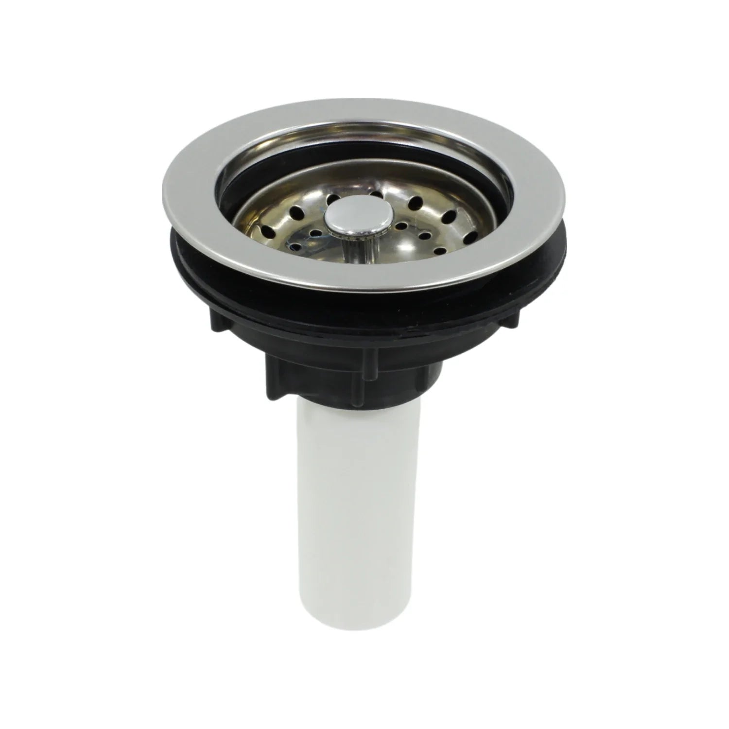 Contra canasta para tarja con tubo. Fabricada en acero inoxidable, ideal para evitar obstrucciones en el drenaje del fregadero. Fácil de instalar y compatible con tarjas estándar.