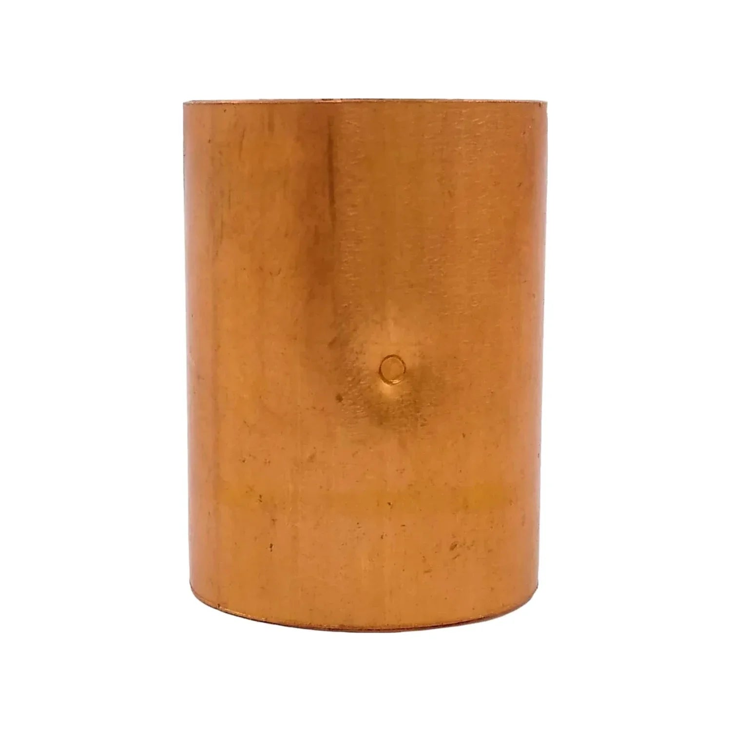 Cople de cobre con tope. Diseñado para unir dos tubos de 3/4" (19 mm) en instalaciones de agua o gas. Fabricado en cobre, con tope interno que facilita la alineación y evita el sobrepaso. Instalación mediante soldadura.