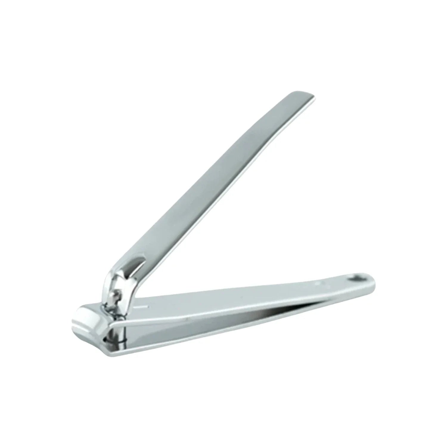 Corta uñas grande con cadena y lima. Fabricado en acero inoxidable con punta curva para cortes precisos. Ideal para uso personal o profesional en manicura y pedicura.