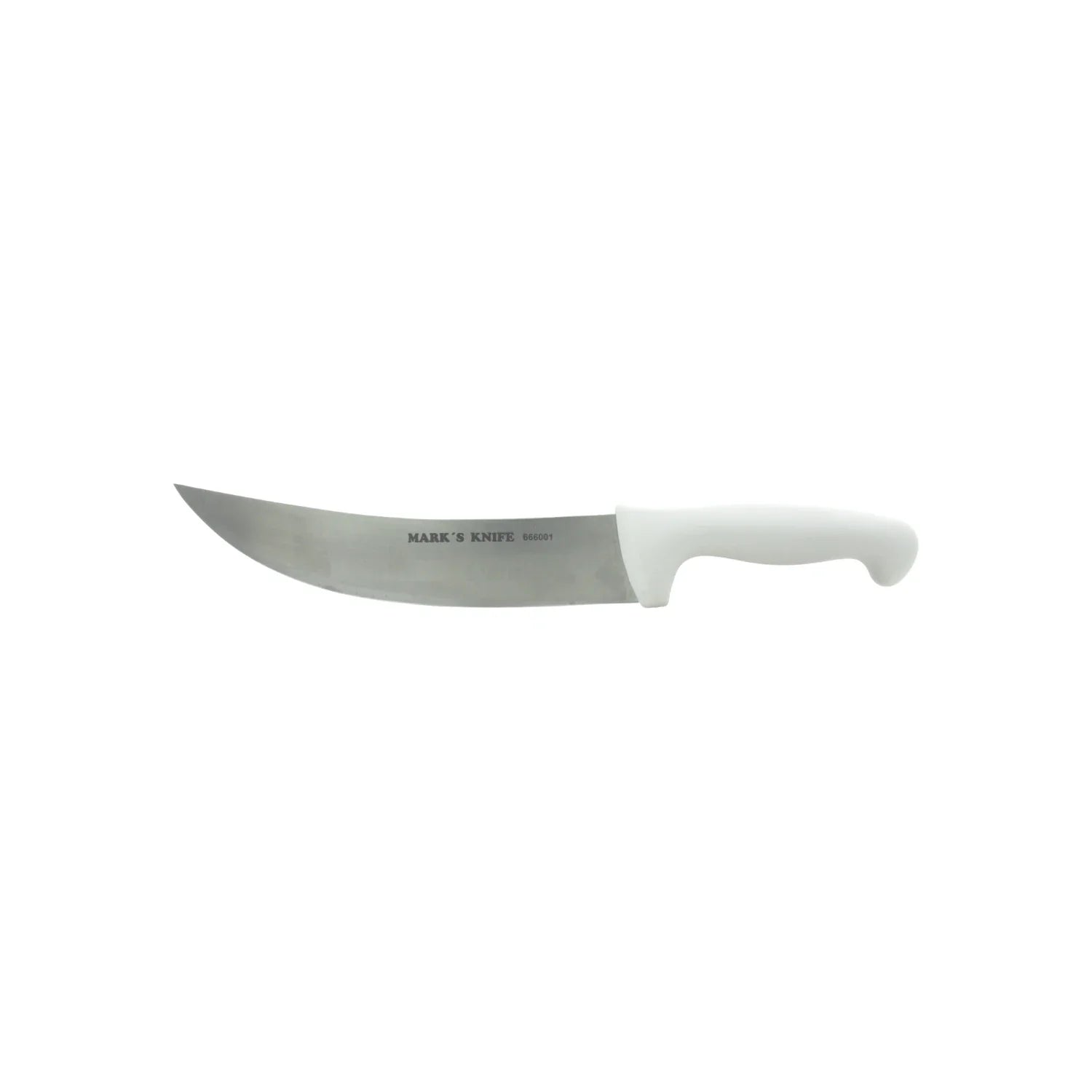El cuchillo Mark's Knife carnicero de 8" está diseñado para cortes precisos en carnicería y cocina profesional. Su hoja de acero al carbón y mango de madera ofrecen durabilidad, comodidad y eficiencia en el trabajo.