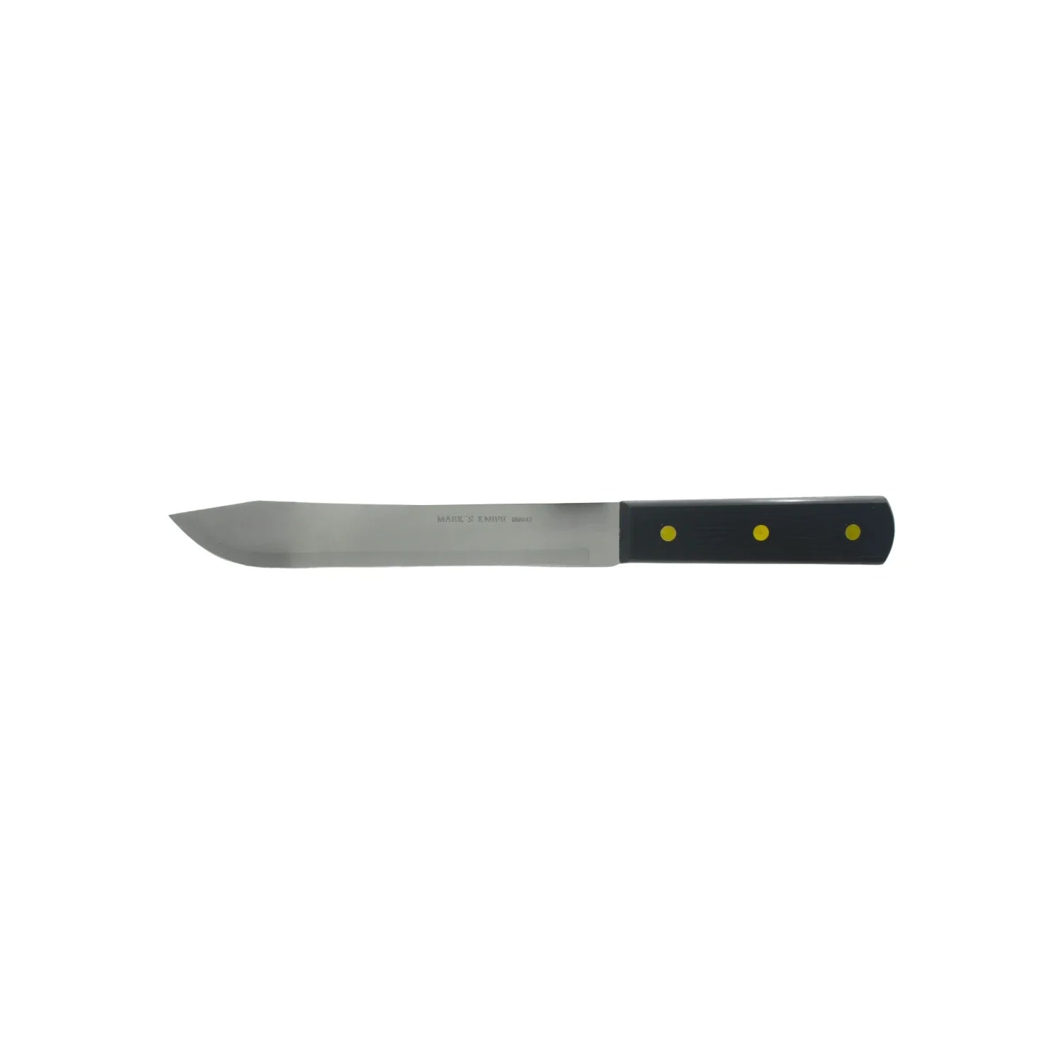 El cuchillo cebollero Mark's Knife de 8" está diseñado para cortes precisos en cocina. Su hoja de acero inoxidable templado y mango de plástico ofrecen durabilidad, comodidad y estilo clásico.