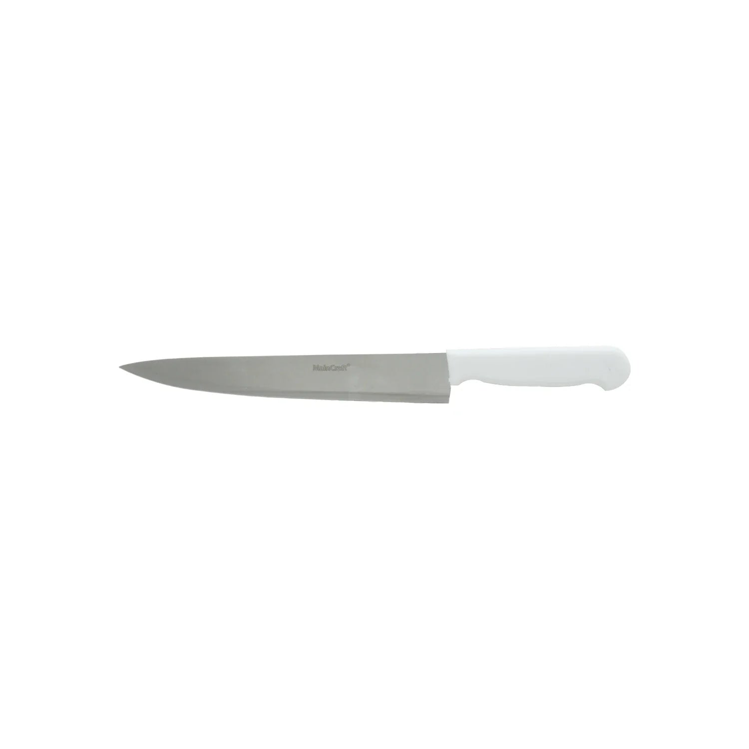 El cuchillo Maincraft liso de 9" está diseñado para tareas básicas en cocina. Su hoja de acero inoxidable y mango blanco de polipropileno ofrecen precisión, higiene y comodidad en el uso diario.