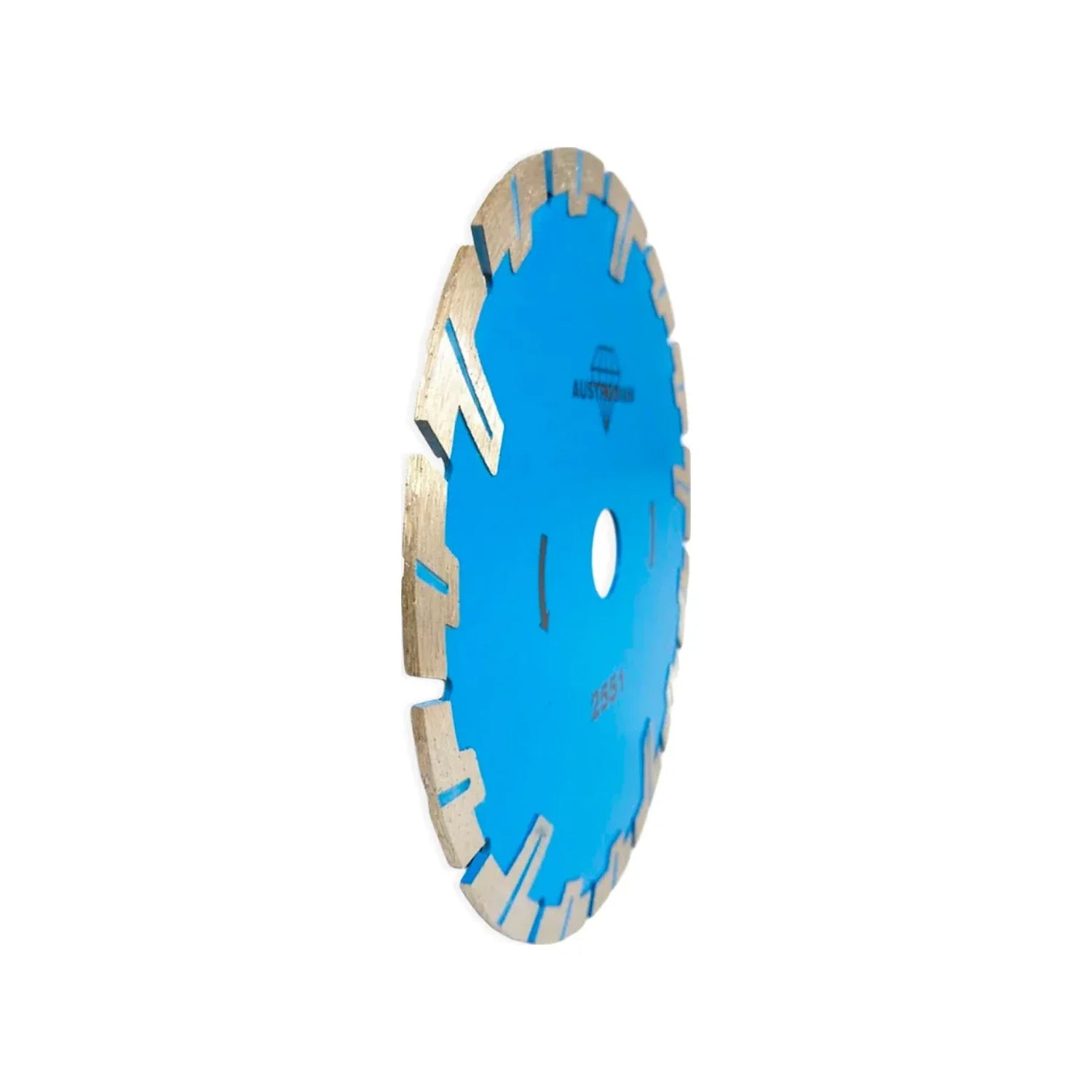 Disco de diamante segmentado Austrodiam modelo 2551 de 7", diseñado para corte en seco de materiales de construcción como concreto, ladrillo, mármol y otras piedras naturales. Su diseño tipo samurai con rin turbo permite cortes rápidos y precisos, sin despostillar. Incluye reductores para adaptarse a diferentes máquinas.