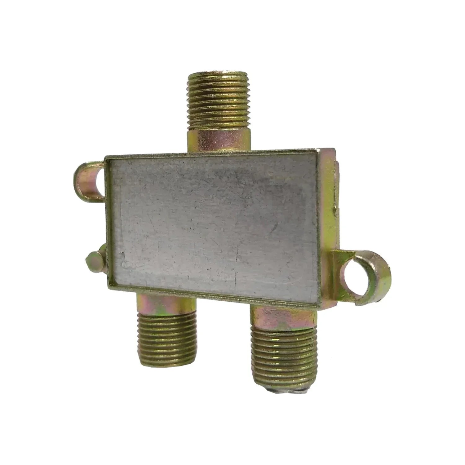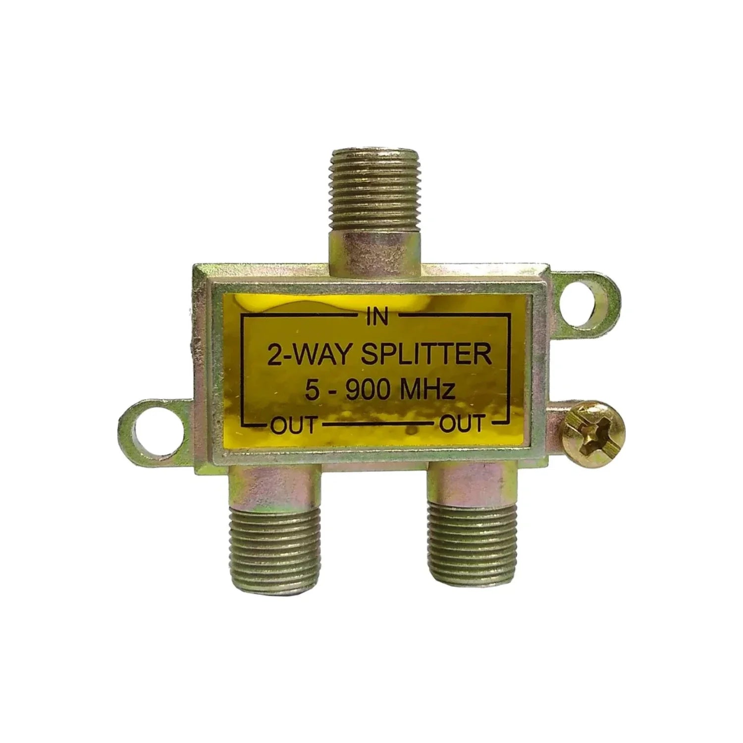 Divisor de señal con 2 salidas, diseñado para distribuir señales de televisión y radio (VHF, UHF y FM) desde una fuente coaxial. Su carcasa metálica sellada con acabado anticorrosivo lo hace apto para uso en interiores y exteriores.