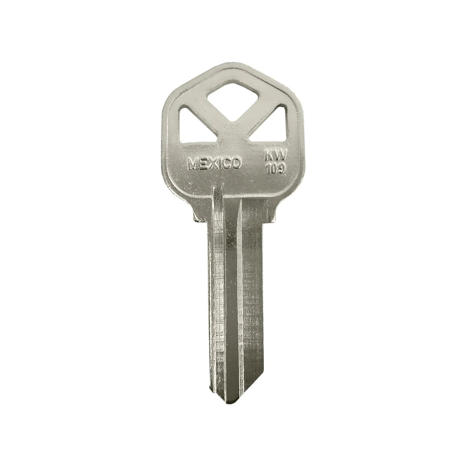 La forja para llave KW-109 de la marca MG está fabricada en latón con acabado niquelado, lo que le proporciona alta resistencia a la corrosión y facilidad de trabajo en duplicadoras. Es una llave virgen compatible con cerraduras tipo KW1, comúnmente utilizadas en puertas residenciales, chapas de pomo y cerraduras cilíndricas.