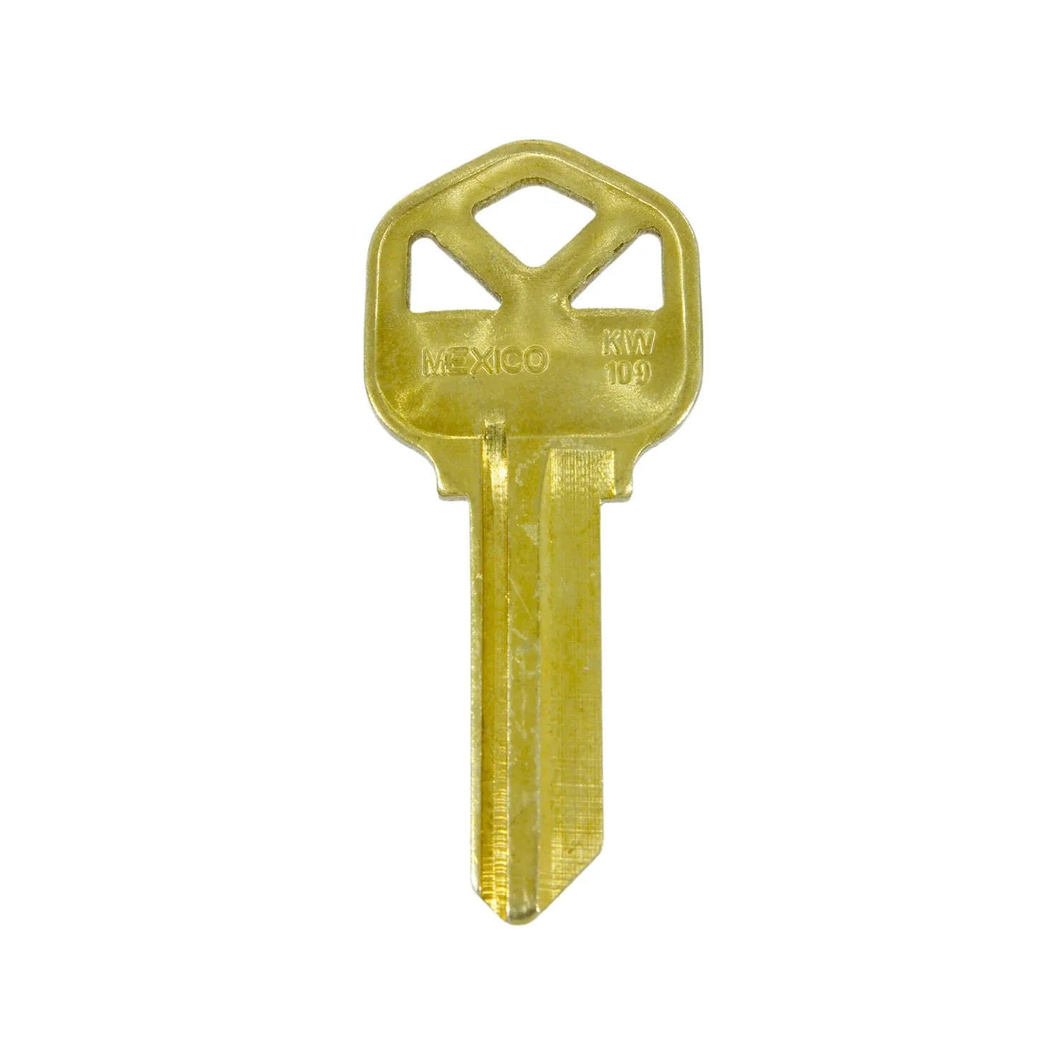 La forja para llave KWI-109 de la marca Austral está fabricada en latón con acabado latonado. Es una llave virgen compatible con cerraduras residenciales tipo Kwikset (KW1), comúnmente utilizadas en chapas de pomo y cerraduras cilíndricas.