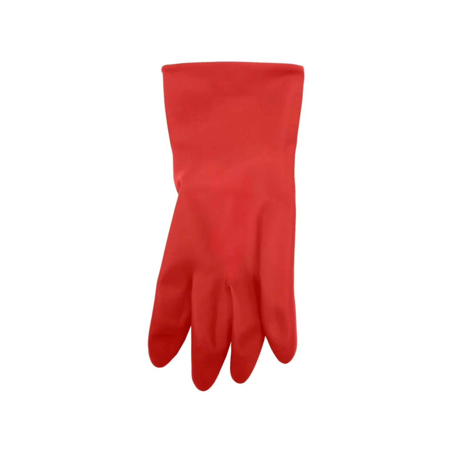 Guante de látex rojo talla 8 modelo GLR08 marca Byp con interior afelpado y textura antiderrapante diseñado para tareas domésticas y profesionales que requieren flexibilidad y resistencia química ligera