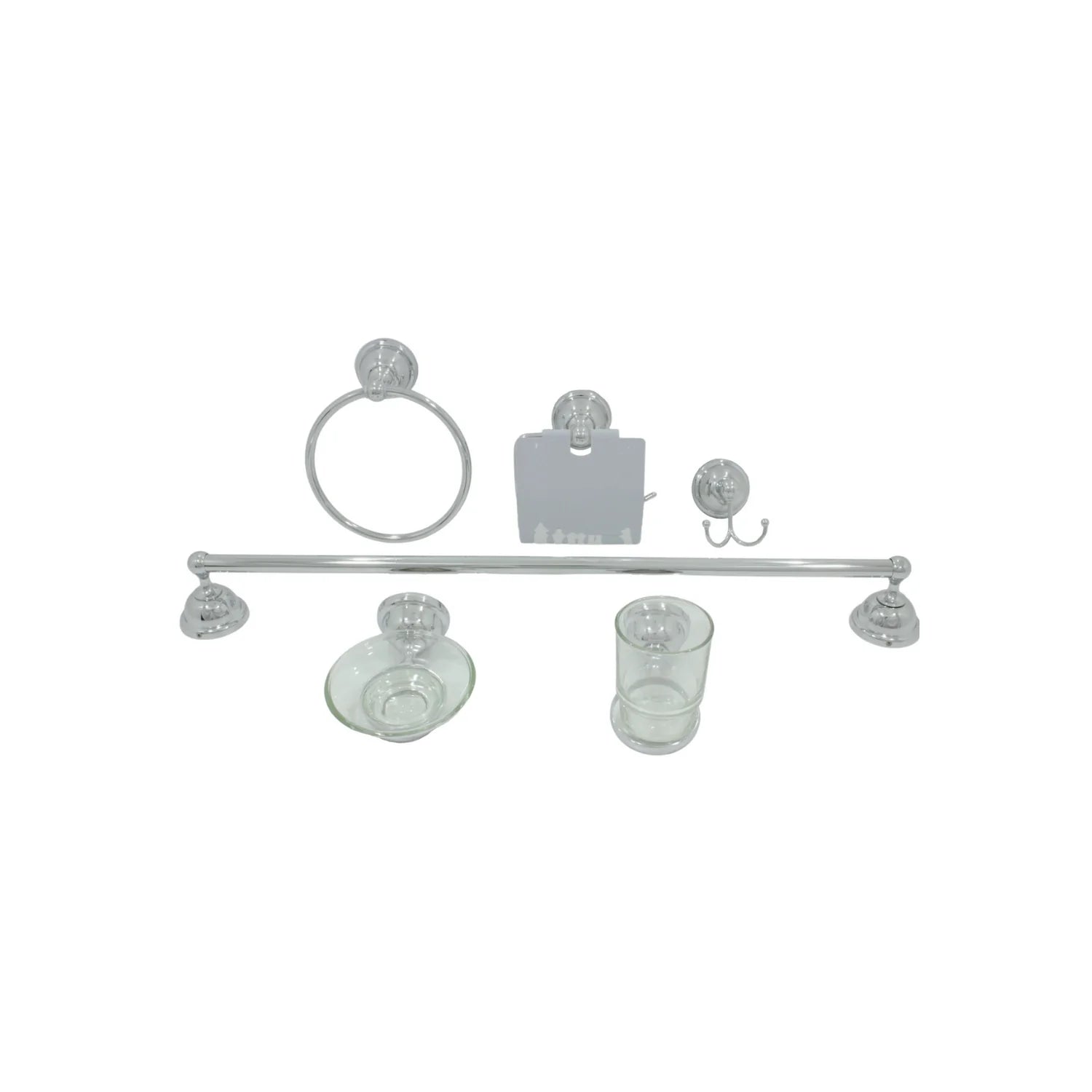 Juego de accesorios para baño cromado Fidic A03 con diseño moderno y elegante, ideal para complementar la decoración de tu baño, incluye elementos esenciales para colgar toallas, sostener jabones y papel higiénico, fabricado en acero inoxidable con acabado cromado para mayor durabilidad y resistencia a la corrosión.