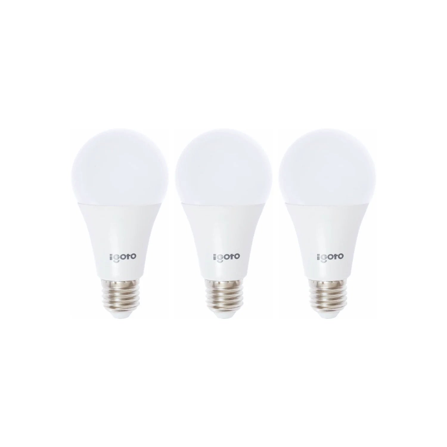 Foco LED Igoto F3P10112 de 12 W en presentación de 3 piezas, ideal para iluminar espacios interiores con luz blanca fría. Su diseño tipo A55 con base E27 permite una instalación rápida en sockets estándar. Ofrece alta eficiencia energética, encendido instantáneo y distribución de luz omnidireccional. Perfecto para hogares, oficinas y comercios.