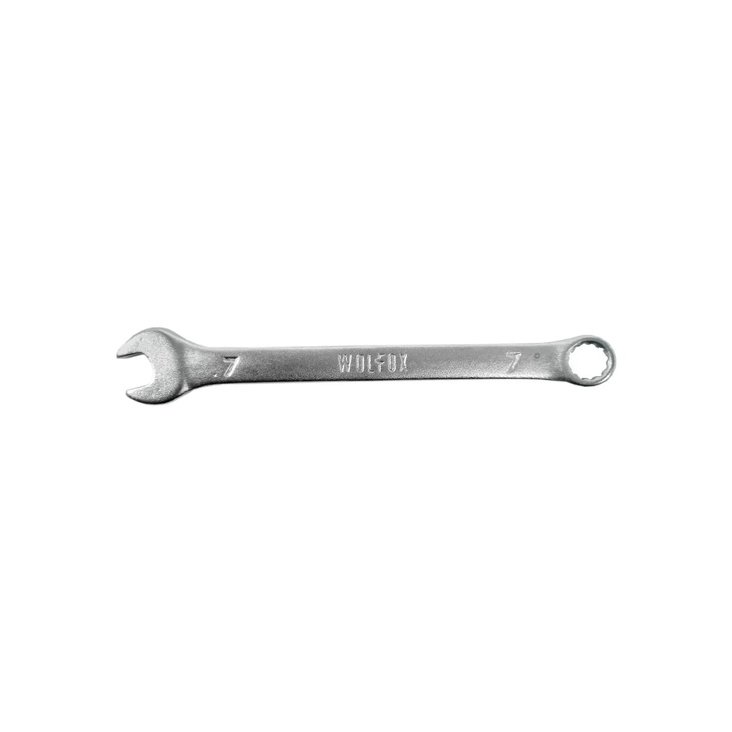 Llave mixta Wolfox WF0170 de 7 mm, fabricada en acero cromo-vanadio con acabado cromado para mayor resistencia a la corrosión. Combina boca fija y corona estriada con ángulo de 15°, ideal para trabajos mecánicos, ferreteros y de precisión. Su diseño compacto permite acceso en espacios reducidos.