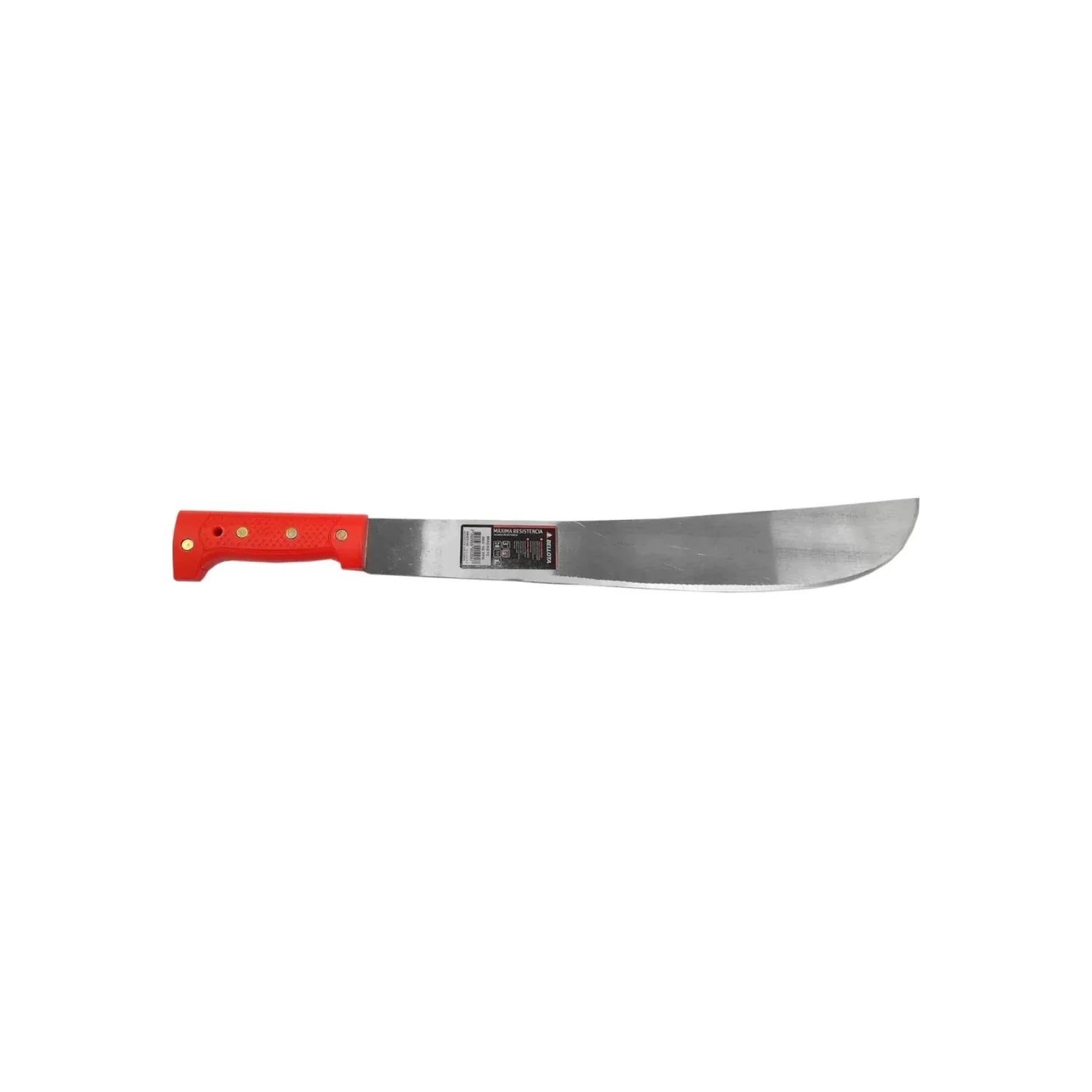 Machete Bellota 746016 de 16 pulgadas, hoja recta pulida de acero alto carbono con tratamiento térmico. Ideal para corte de caña, maleza y residuos agrícolas. Mango ergonómico de plástico con remaches. Alta flexibilidad y durabilidad.