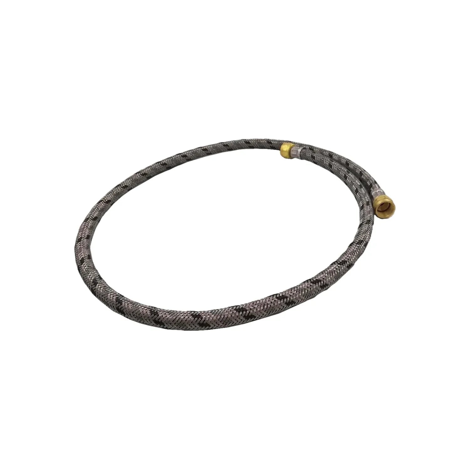 Manguera metálica de 1 m para conexión de gas con recubrimiento trenzado y terminales niquelados diseñada para instalaciones domésticas de estufa o boiler con alta resistencia a presión y temperatura