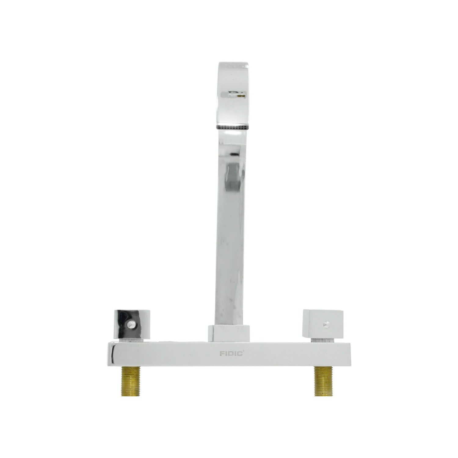 Mezcladora Fidic F8286BN para fregadero de 8", fabricada en bronce con cubierta metálica y cuello metálico. Acabado satinado, sistema de doble maneral cuadrado metálico de vuelta completa y aireador ajustable. Ideal para cocinas residenciales que requieren estética moderna, control preciso y alta durabilidad.