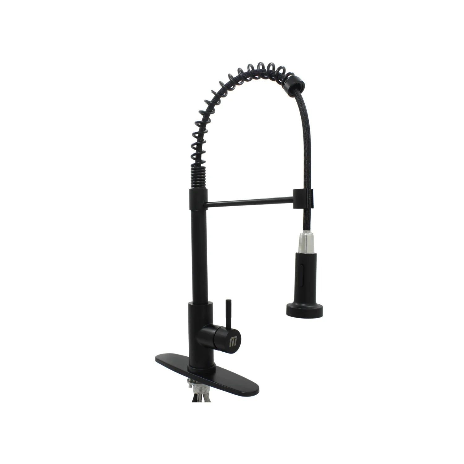 Mezcladora monomando Metalflu 04016 para fregadero, fabricada en acero inoxidable con acabado negro mate. Cuello tipo "U" extraíble, cartucho cerámico y diseño contemporáneo. Ideal para cocinas modernas que requieren estética, funcionalidad y fácil limpieza.