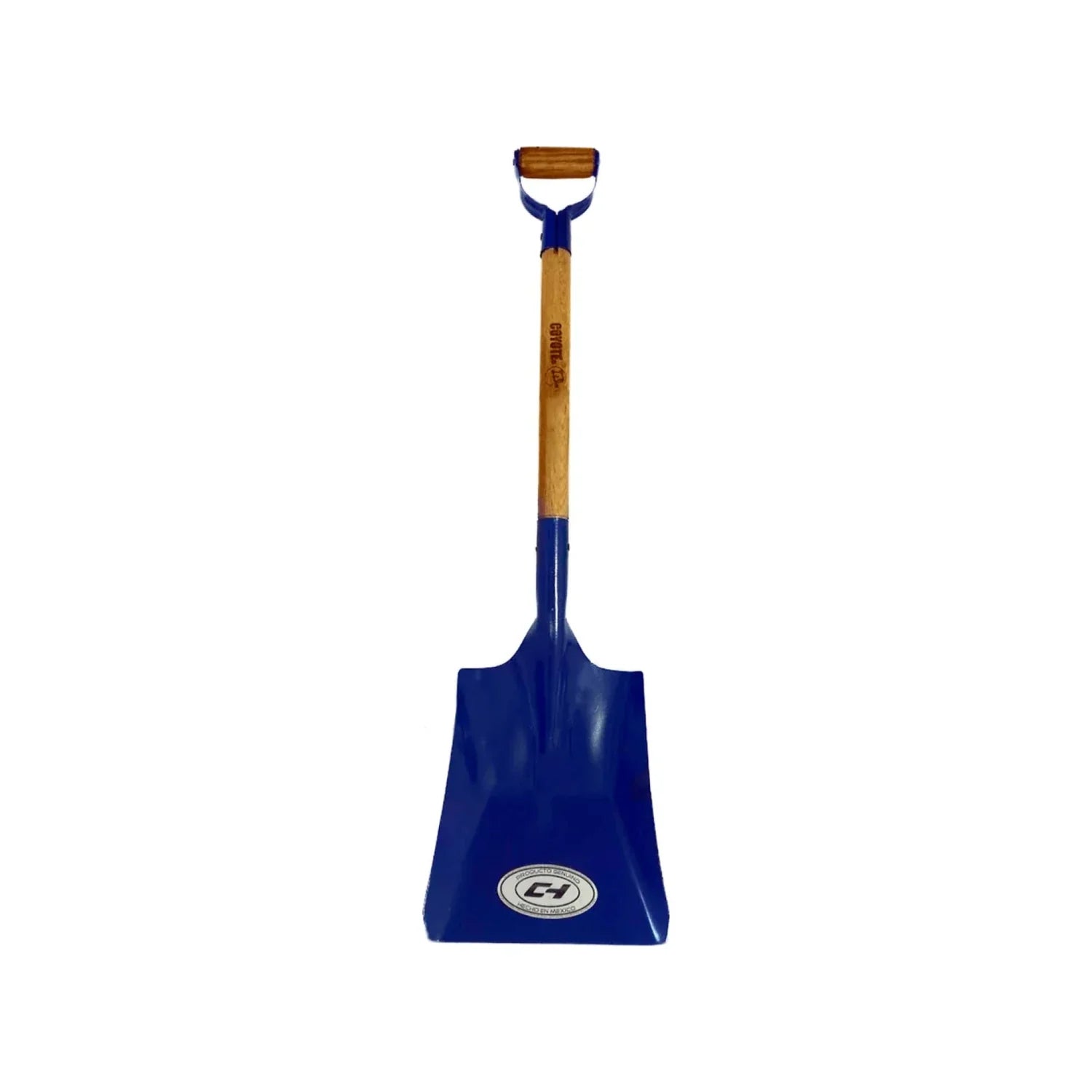 Pala cuadrada CH 02-403 con hoja de acero SAE 1045, lámina calibre 16 y puño de madera tipo “Y”. Cabo de encino de 36", hombros doblados y diseño ergonómico para carga de tierra, escombro y materiales sueltos. Uso ferretero y agrícola.