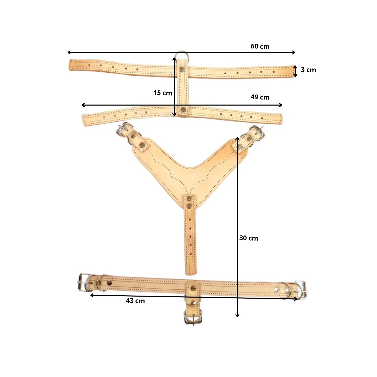 Pechera grande para perro elaborada en cuero, ideal para razas grandes. Costuras reforzadas, hebillas metálicas y ajuste cómodo al pecho. Proporciona control, seguridad y estilo en paseos diarios, con diseño clásico y duradero.