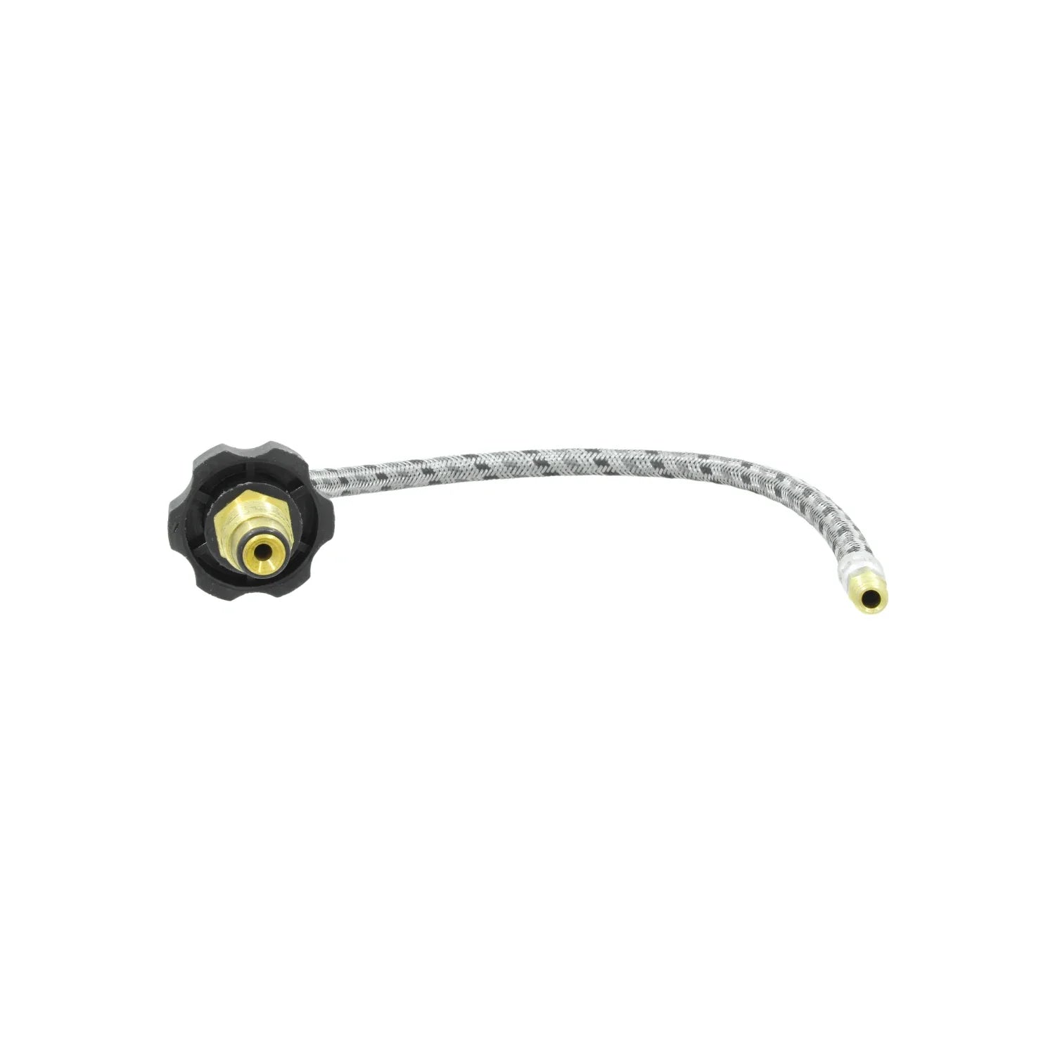 Pigtail flexible metálico Aleamex AM-PTI06X55 de 55 cm, diseñado para conexiones de gas LP en cilindros y reguladores. Fabricado con tubo metálico corrugado y recubrimiento exterior