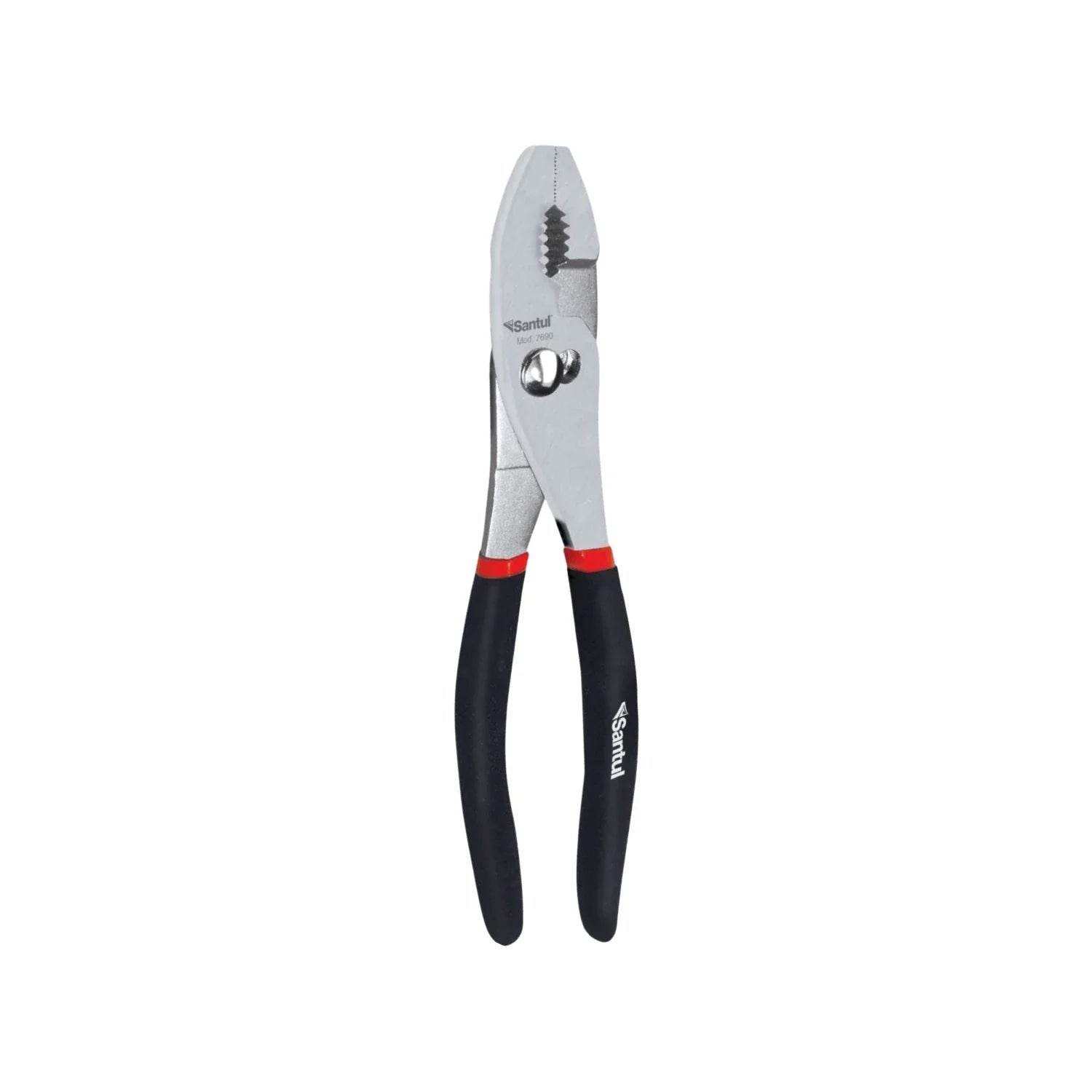 Pinza profesional Santul 7690 de 6 pulgadas con mordazas ajustables y mango ergonómico de vinil, diseñada para tareas de sujeción, corte y torsión en espacios reducidos que requieren precisión, seguridad y resistencia dieléctrica.