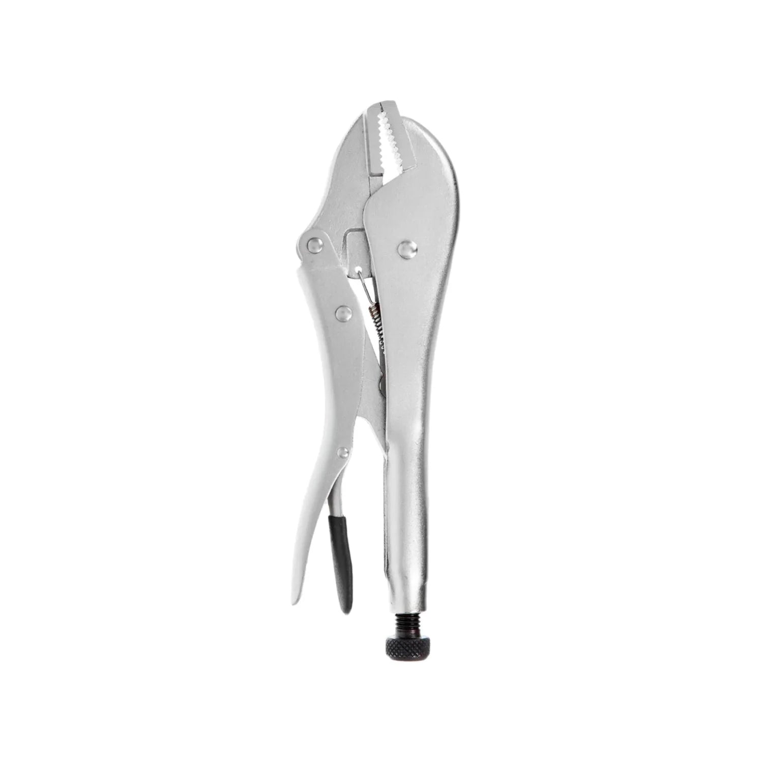 Pinza profesional Santul 7702 de presión con mordaza curva de 10 pulgadas, diseñada para sujetar, torcer o aflojar piezas en trabajos mecánicos, eléctricos e industriales. Su cuerpo robusto de acero cromo-vanadio y sistema de liberación rápida ofrecen máxima firmeza, durabilidad y control en aplicaciones exigentes.