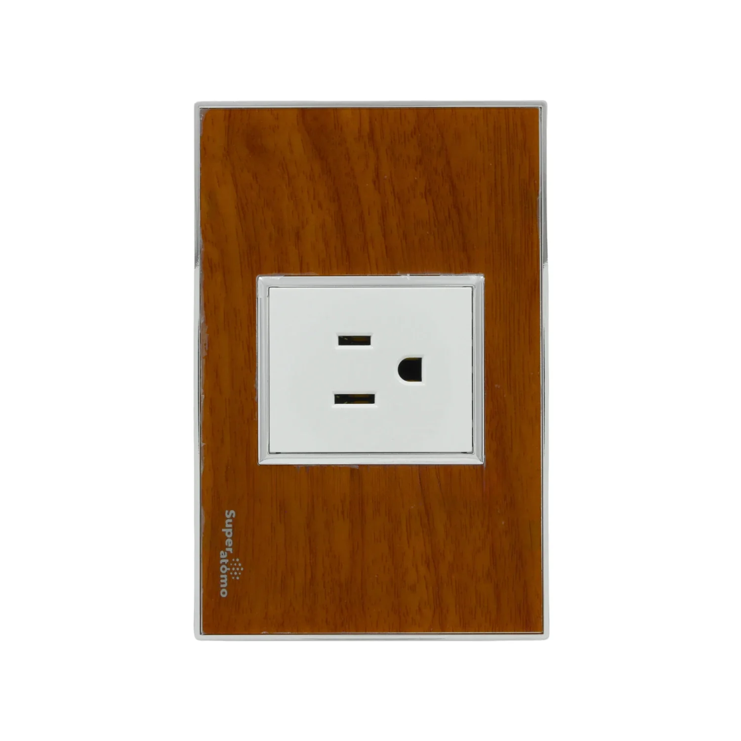 Placa armada Super átomo SA1501-PM con 1 contacto aterrizado, diseñada para instalaciones eléctricas residenciales o comerciales.
