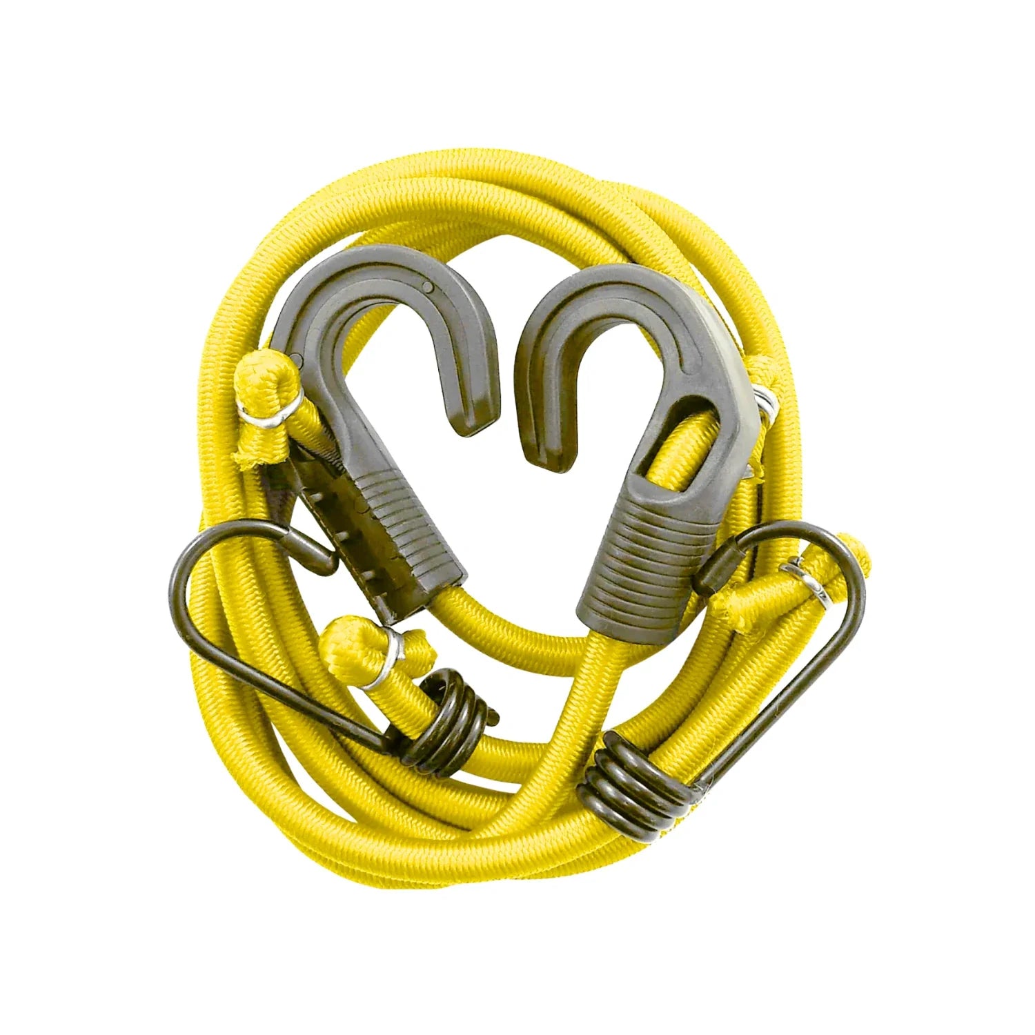 El tensor elástico Santul 8450 24″ (61 cm) en color amarillo incluye un par de piezas resistentes y funcionales para asegurar cargas ligeras o sujetar estructuras en actividades cotidianas. Fabricado con cuerpo recubierto de polipropileno y ganchos de acero templado con recubrimiento plástico, ofrece durabilidad, manejo seguro y buena elasticidad.
